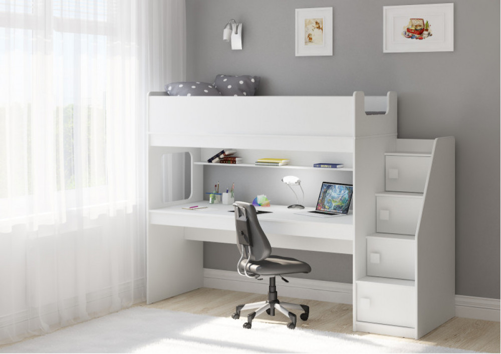 Учебная зона со столом под спальным местом открывает возможности для письменных работ,а также здесь удобно расположить ноутбук.