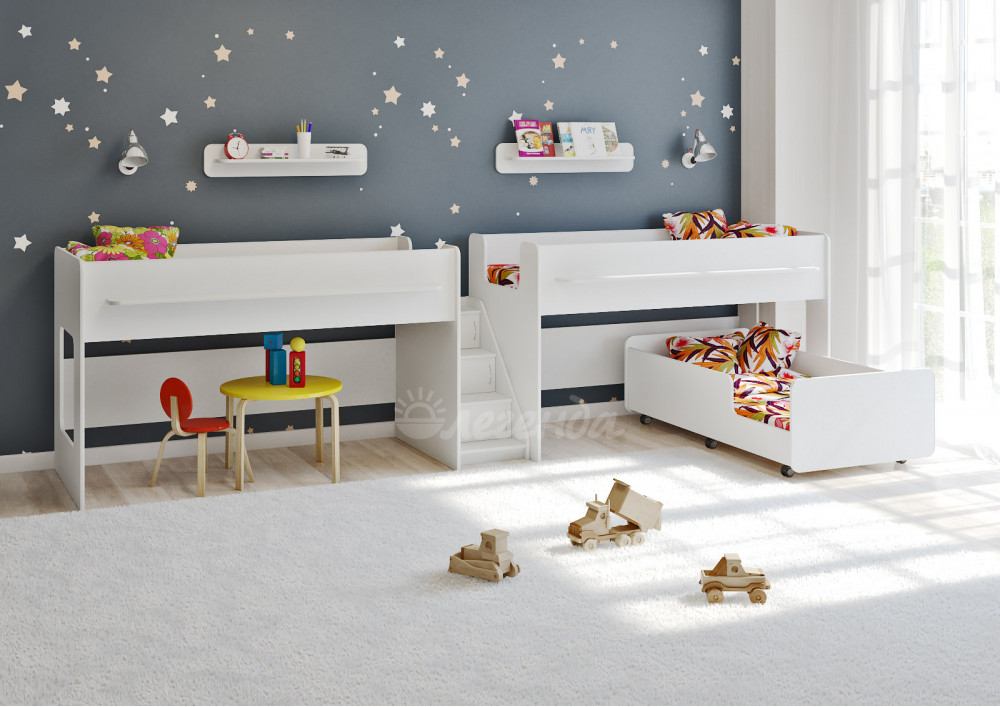 Выкатная кровать Легенда 23.5 белая - интересный и оригинальный комплект для троих детей.